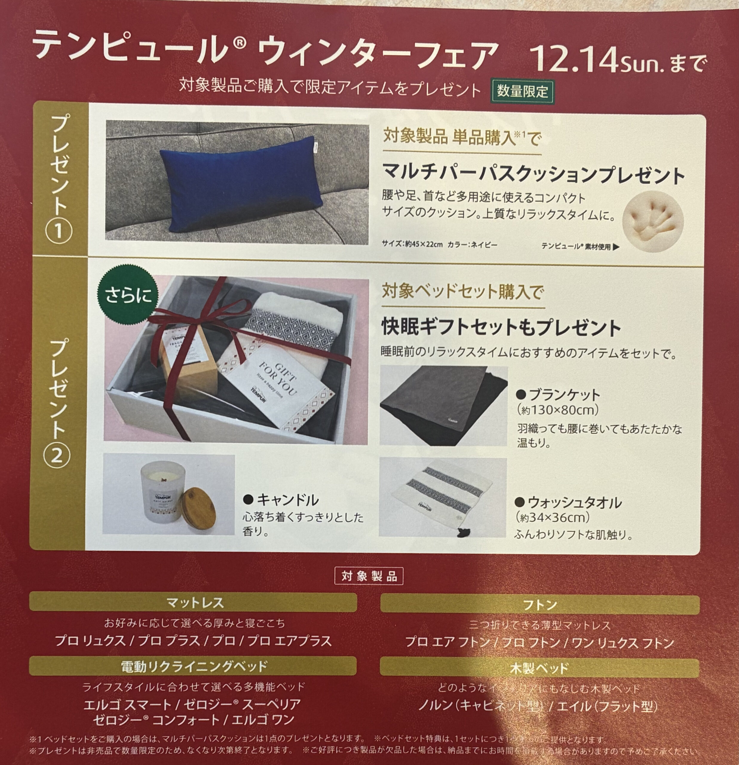対象ベッドセットご購入でさらにブランケットやキャンドルなどが入った快眠ギフトセットもプレゼント🎁